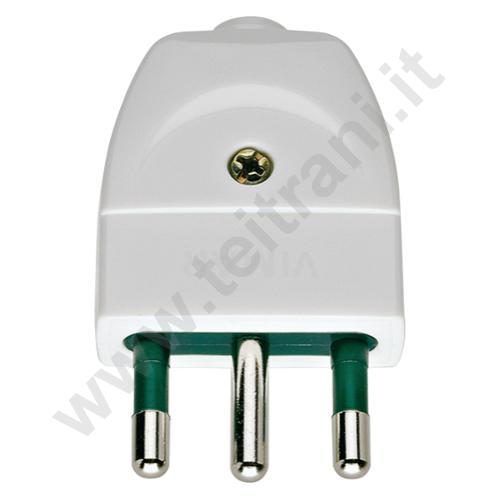 Spina SICURY 2P+T 16 A 250 V~, standard italiano tipo S17, uscita cavo assiale, bianco