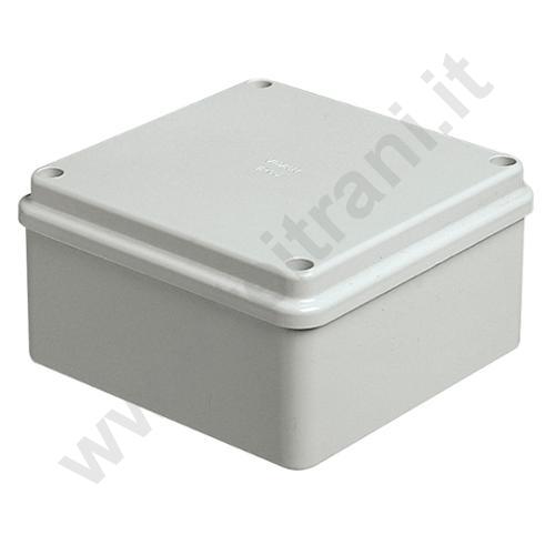 Scatola di derivazione da parete IP56, con pareti lisce, coperchio cieco fissato da viti in acciaio inox RAL 7035. Dimensioni 100x100x50 mm Scatola di derivazione da parete IP56, con pareti lisce, coperchio cieco fissato da viti in acciaio inox RAL 7035. Dimensioni 100x100x50 mm